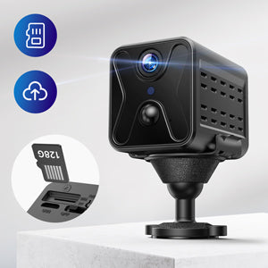 【Audio recording and SD/cloud storage】: This portable nanny cam NOT support 2 way audio, it’s single way audio, which means the recorded video has sound, but we can’t talk via this wifi security camera; All videos can be saved to Micro SD card up to 128GB(NOT INCLUDED), or cloud storage service on APP, NO additional cost to download APP, but cloud storage is NOT free, as per your own needs choose the better choice(we offer 30-days' free trial for cloud recording).