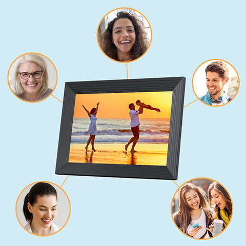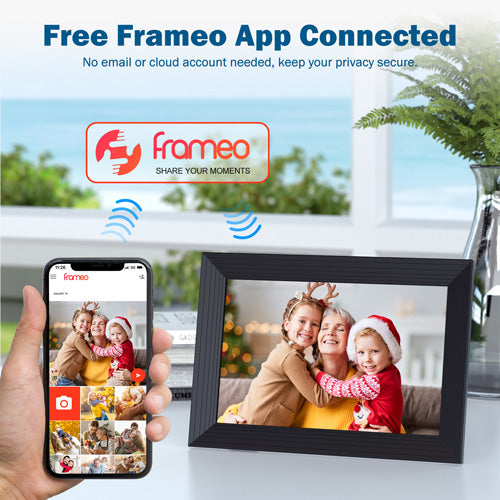 Instant wireless sharing】 The free app (Frameo) is available for both Android and iOS for direct photo and video sharing. You, your family, and friends only need to download the free app ''frameo'' on the smartphone for sharing, no email or cloud account. When you are ready to send photos, you can also add funny captions. The digital picture frame is the perfect gift for important days such as Mother's Day, Father's Day, birthdays, weddings, and anniversaries.
