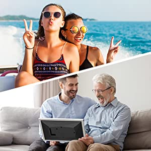 - Perfect Gift to Your Family and Friends - Invite unlimited friends and family members to instantly share photos from your phone to the electronic photo frame through the frameo app. Or send photos and videos to their photo frame via WiFi. In addition, it is a perfect gift for seniors who are not good at using smart phones to keep in touch with the younger generation.