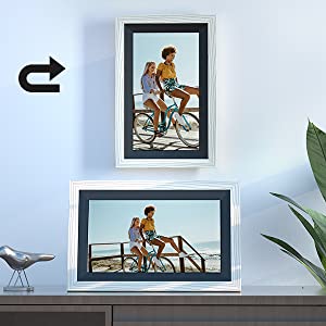 You can freely place the digital picture frame vertical or horizontal as you like. The pictures on the frame will automatically rotate when you adjust the orientation.